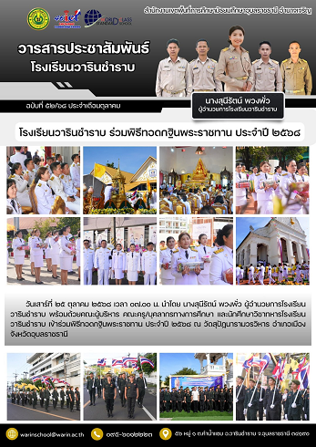 โรงเรียนวารินชำราบ สังกัดสำนักงานเขตพื้นที่การศึกษามัธยมศึกษาอุบลราชธานี อำนาจเจริญ ร่วมวางพวงมาลา เนื่องในวันปิยะมหาราช เมื่อวันที่ 23 ตุลาคม 2568 ณ หอประชุมโรงเรียนเทศบาลแสนสุข