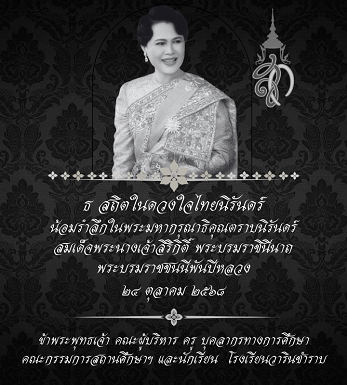 โรงเรียนวารินชำราบ จัดกิจกรรมยืนสงบนิ่ง เพื่อถวายความอาลัยและน้อมรำลึกในพระมหากรุณาธิคุณอันหาที่สุดมิได้ แด่สมเด็จพระนางเจ้าสิริกิติ์ พระบรมราชินีนาถ พระบรมราชชนนีพันปีหลวง เมื่อวันที่ 27 ตุลาคม 2568 เวลา 08.15 น.